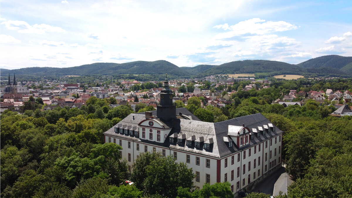 Die Stadt Saalfeld war von 1680 bis 1745 Residenz der Herzöge von Sachsen-Saalfeld, später Sachsen-Coburg-Saalfeld. Entstanden war das Herzogtum durch die Gothaische Landesteilung von 1680. Herzog Johann Ernst (1658–1729), der jüngste der sieben Söhne des im Jahre 1675 verstorbenen Herzogs Ernst des Frommen von Sachsen-Gotha-Altenburg, erhielt dabei den kleinsten Landesteil, nämlich Saalfeld mit den Ämtern Saalfeld, Gräfenthal, Probstzella, der Stadt Lehesten und seit 1682 auch Pößneck, zugesprochen. Sein zweitältester Bruder, Herzog Albrecht, der bereits 1677 den Grundstein für den Schlossbau in Saalfeld gelegt hatte, übernahm nun den bedeutenderen Landesteil Coburg. Das politische Handeln Johann Ernsts diente fortan einer umfassenden „Positionsverbesserungsstrategie“, um sein Selbstverständnis als Reichsfürst zu dokumentieren.