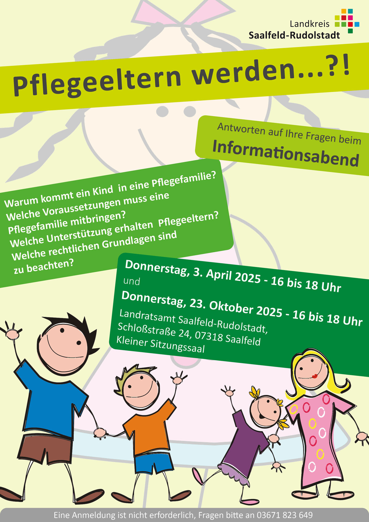 Die Teilnahme an dem Informationsabend ist kostenfrei und unverbindlich. Eine Anmeldung ist nicht erforderlich. Bei weiteren Fragen zur Veranstaltung steht der ASD unter 03671 823 649 zur Verfügung.
