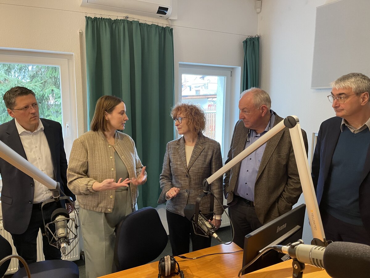 „Ehrenamt ist das Herz Thüringens. Danke, dass Sie es schlagen lassen“, heißt es auf der von Ministerpräsident Mario Voigt unterschriebenen gerahmten Urkunde zu den Fördermitteln. Beim Bürgerradio SRB empfingen Leiterin Cornelia Moersch und der Vereinsvorsitzende Mathias Moersch die Ministerin. Rund 400 Ehrenamtliche engagieren sich für das Bürgerradio, um das bunte Programm auf die Beine zu stellen. Die Fördermittel in Höhe von gut 21.000 Euro dienen der Digitalisierung des Studios 2 im SRB. Zehn Prozent Eigenmittel muss der Verein selbst aufbringen.
