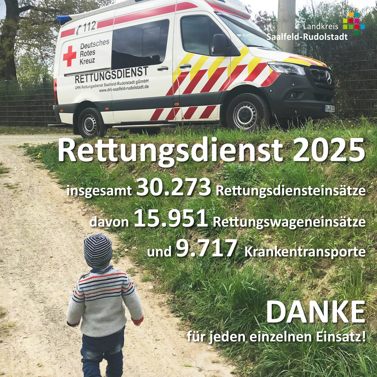 Saalfeld. Mit insgesamt 30.273 Einsätzen haben die Rettungskräfte des Landkreises Saalfeld-Rudolstadt im Jahr 2025 deutlich mehr Einsätze bewältigt als im Vorjahr 2024. Das entspricht einem Anstieg um 1.633 Einsätze.
