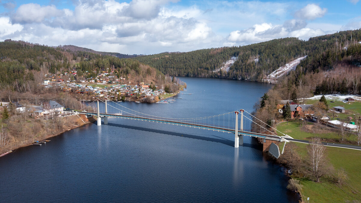 Gegenüber der ursprünglichen Planung ruhen die stählernen Pylonen, die die Seile tragen, auf zwei im Stausee stehenden Stahlbetonpfeilern, um die Stützweite zu verringern. Die vorhandenen Widerlager der alten Brücke werden genutzt. Die Pfeiler wurden im neuen Entwurf so angeordnet, dass sie außerhalb der noch vorhandenen Trümmer der gesprengten alten Brücke stehen. Der einseitige Gehweg verläuft jetzt innerhalb der Pylonen. Ursprünglich war der beidseitige Ausbau der Gehwege außerhalb der Tragseile geplant. Durch die jetzige Vorzugsvariante der Vorplanung wird die Brücke statisch noch einmal aufgewertet. „Wir freuen uns, dass dieses Projekt, für das wir lange gekämpft haben, nun endlich umgesetzt wird. Es ist gut und wichtig, dass die permanente Verbindung über den Hohenwarte-Stausee mit dem Bau der Brücke wieder hergestellt wird. Die Brücke ist an den Bedarf in der Region angepasst und nicht für den Schwerlastverkehr ausgelegt. Dennoch können im Notfall auch große Feuerwehrfahrzeuge den kurzen Weg über den Stausee nehmen“, so die beiden Landräte.