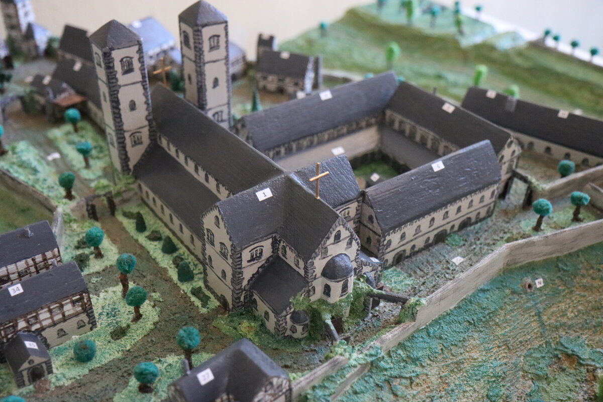 Ein besonderes Ausstellungsstück war das Modell des Saalfelder Benediktinerklosters St. Peter und Paul, das für die Saalfelder Ausstellung ja titelgebend war. Seit 2020 ist das Modell an prominenter Stelle im Saalfelder Schloss ausgestellt und damit am authentischen Ort.