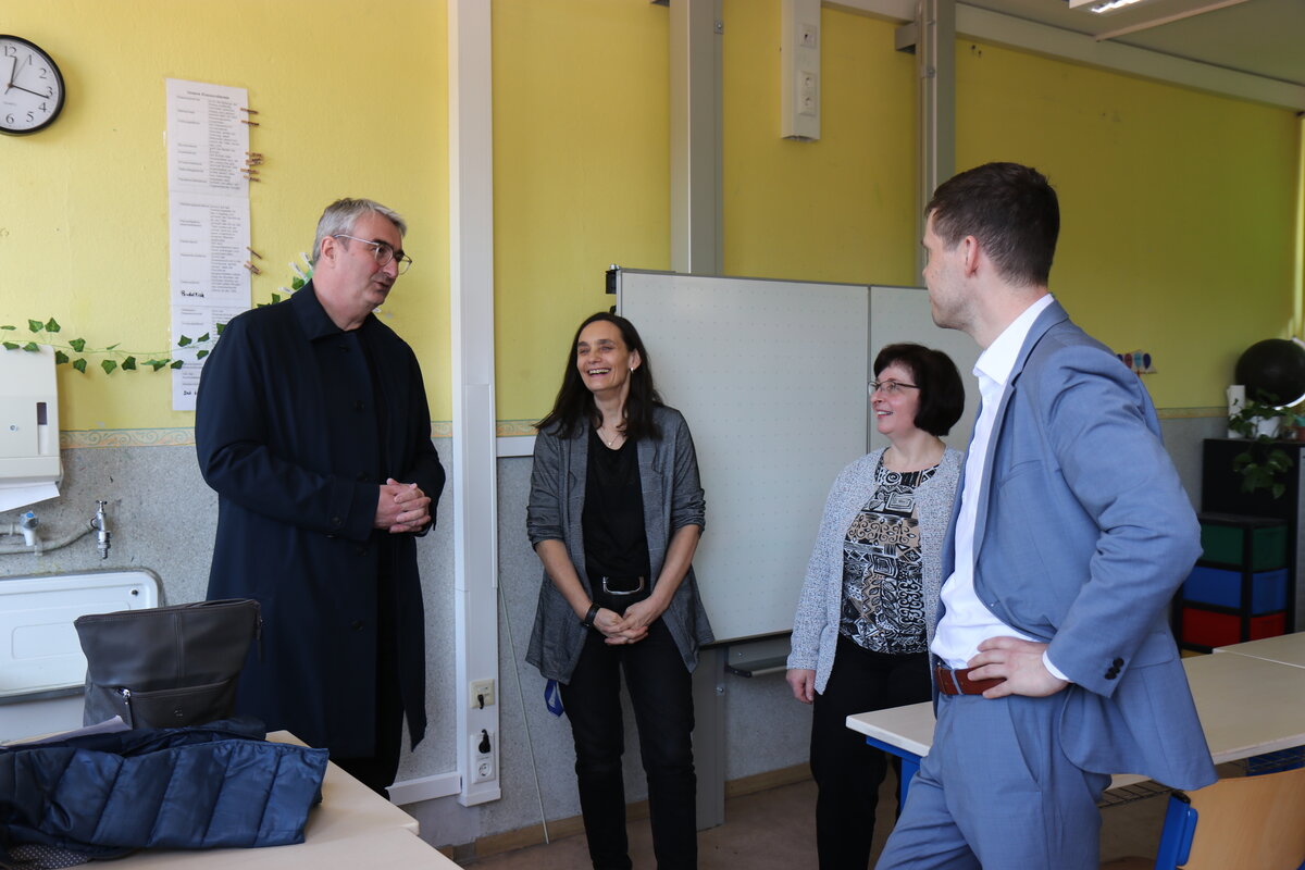 MdL Lutz Liebscher und Landrat Marko Wolfram bedankten sich zum Ende des Schulbesuchs bei den hochmotivierten Schulleiterinnen für den Einblick in einen Schulalltag mit oftmals schwierigen Rahmenbedingungen. Diese sprachen noch einen allgemeinen Wunsch aus: „Wir hätten schon Ideen und könnten einiges bewirken – aber dazu müssten die Eltern auch mitziehen.“
