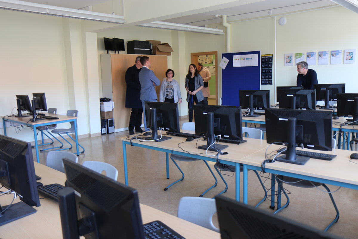 Die Gäste lernten im Gespräch mit den Schulleiterinnen zwei dynamische Schulen unter einem Dach kennen, in der derzeit etwa 400 Schülerinnen und Schüler unterrichtet werden. Ein Schmuckstück im Haus ist das neue Computerkabinett, das bereits ab der vierten Klasse genutzt wird. Wünschenswert wäre auch ein schöner Aufenthalts- und Entspannungsraum im Schulgebäude – bisher nutzen die Schüler dafür überwiegend Treppenhäuser und Flure, die als Aufenthaltsbereiche eingerichtet sind.