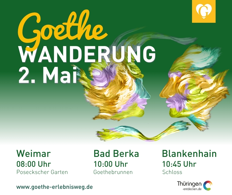Saalfeld-Rudolstadt/Weimarer Land. Am 2. Mai laden die Landkreise Weimarer Land und Saalfeld-Rudolstadt gemeinsam mit dem Thüringer Gebirgs- und Wanderverein Rudolstadt zur 29. Goethe-Wanderung auf dem Goethe-Erlebnisweg ein. Die beliebte Strecke von Weimar bis Großkochberg verbindet Natur, Kultur und Bewegung zu einem besonderen Erlebnis.